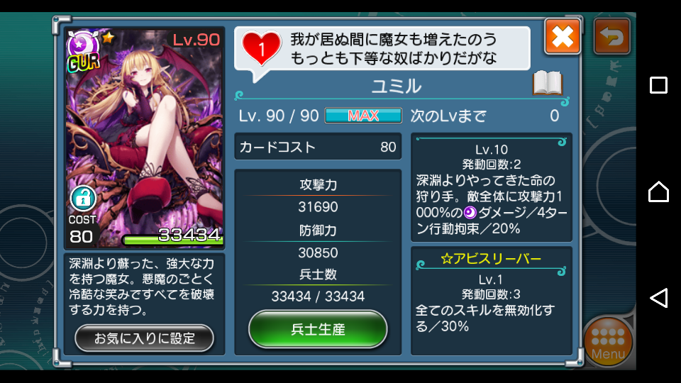 攻撃面は女帝クレオパトラが上っぽいが、総合能力では相当上回る。彼女は他の魔女を見下しているようだが、正直そうであってもなんの問題もないw
